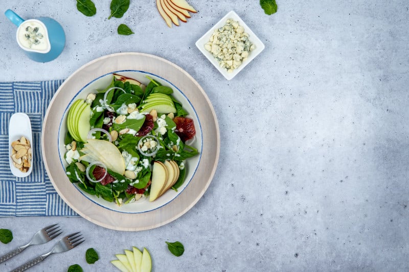 Colorful and crisp salad packed with salty and sweet flavors and drizzled with Litehouse® Original Blue Cheese.