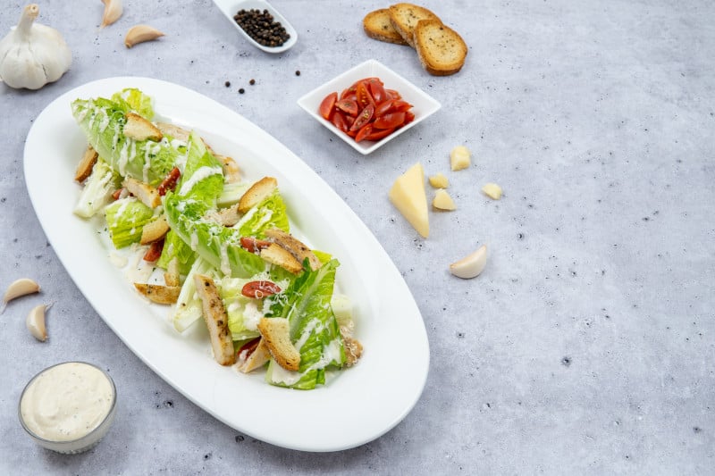 Crunchy romaine lettuce and grilled chicken served with Litehouse® Caesar Dressing.